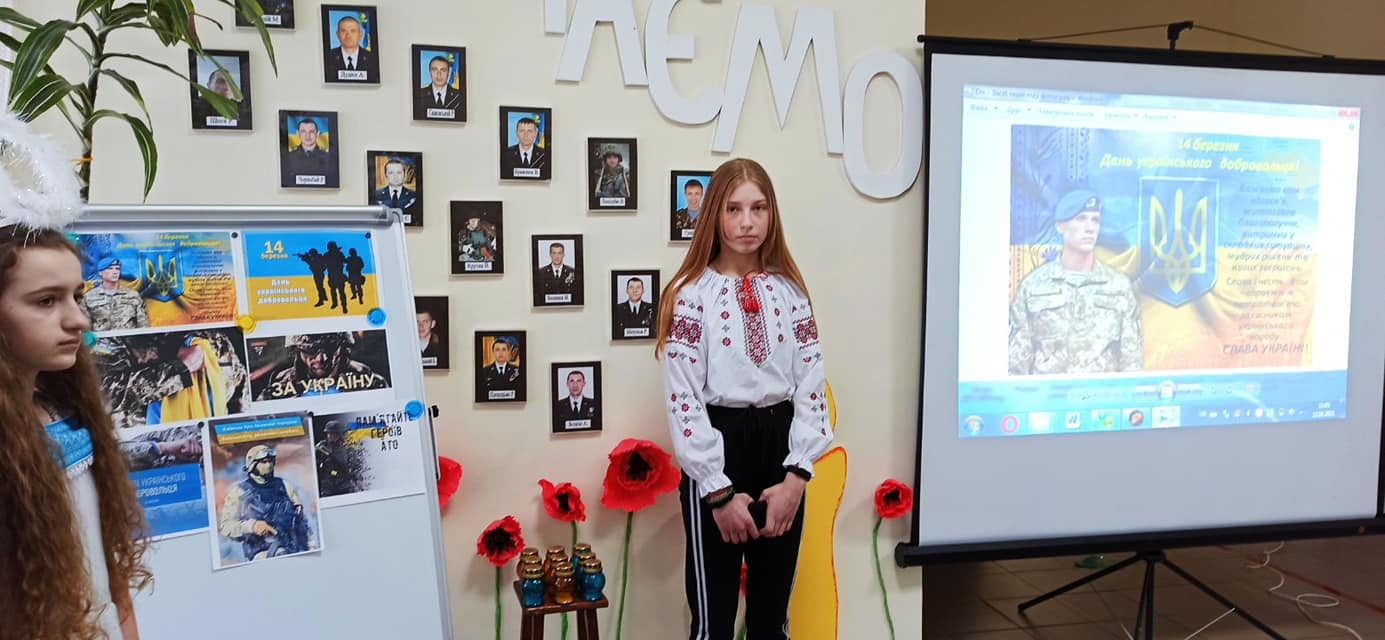 14 березня - День українського добровольця! Напередодні, у п'ятницю , учні та вчителі Дуб'євського НВК адресували подяку добровольцям, взявши участь у патріотичному заході «Вони для нас виборюють життя...», який провела педагог-організатор Дубенська Т.І.