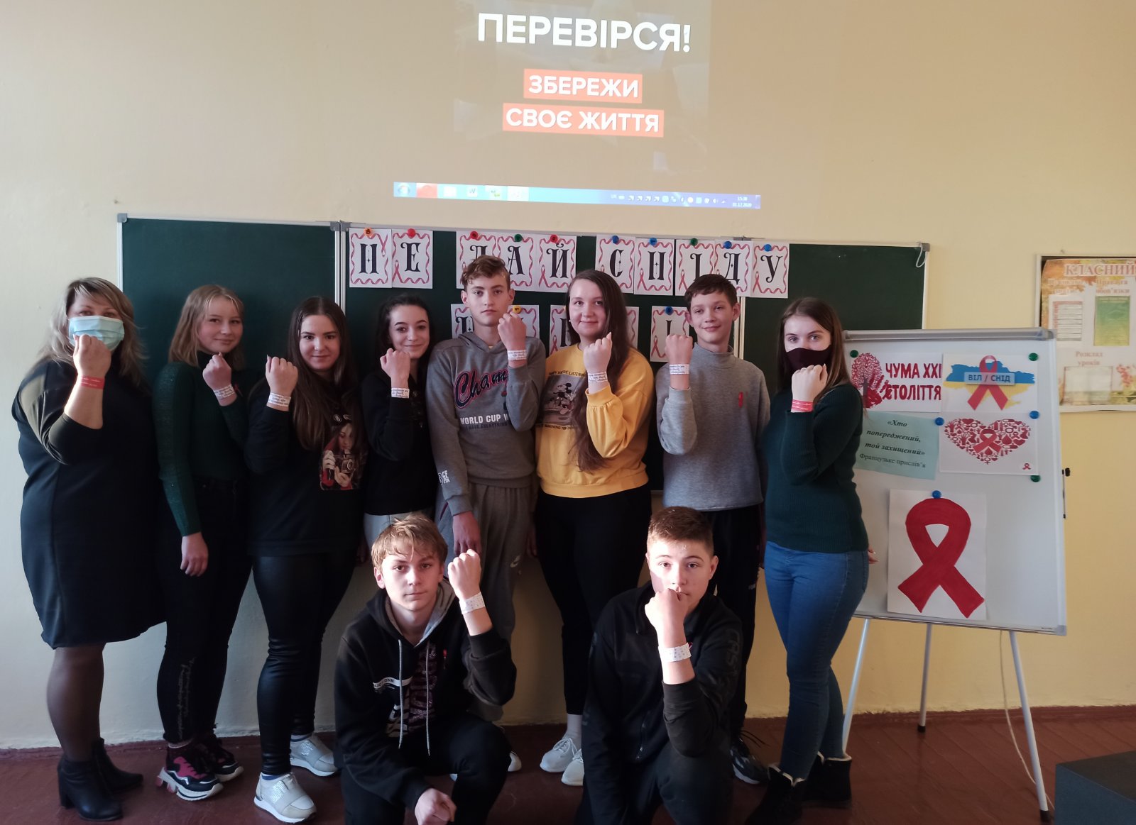 Учні та вчителі долучилися до загальнонаціональної акції «Червона стрічка», що стала символом підтримки інфікованиних, протидії дискримінації і суспільної ізоляції людей, що живуть з ВІЛ/СНІДом, надії на майбутнє без СНІДу.