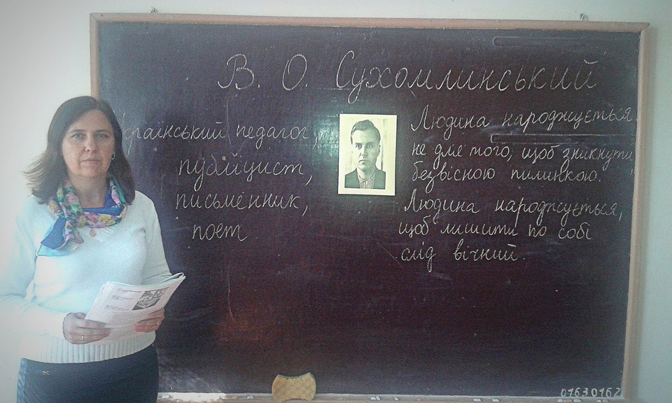 28 вересня минуло 100 років з дня народження видатного українського педагога,публіциста,письменника та поета Василя Олександровича Сухомлинського.Він,як ніхто інший у вітчизняній педагогіці, мужньо ставив і розв'язував проблему формування в молоді національного і естетичного світобачення. Про один із шляхів успішного розв'язання цієї проблеми він писав, що у душі дітей мають увійти кращі народні традиції і стати святим законом, бо не можна уявити народ без імені, без пам'яті, без історії.З нагоди цієї пам'ятної дати педагоги Дуб'євського НВК провели цікаві заходи для учнів. Це були круглі столи і диспути для учнів старших класів та читання оповідань В.Сухомлинського,перегляд фільмів і їх обговорення з учнями молодшої школи. Діти дізналися багато нових фактів про Василя Олександровича,його життєву позицію, творчу та педагогічну діяльність.Дякуємо за цікаві і змістовні розповіді всім,хто долучився до організації та проведення даних заходів.І як заповідав нам визнач