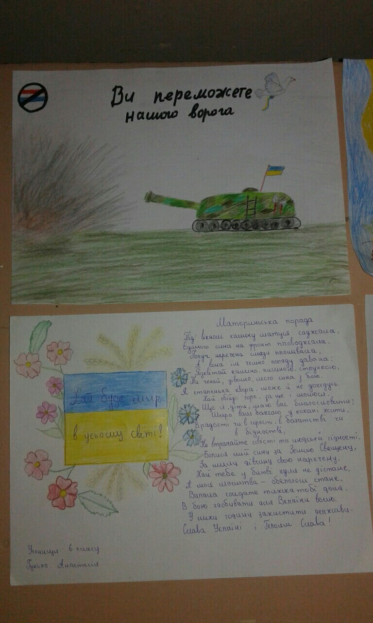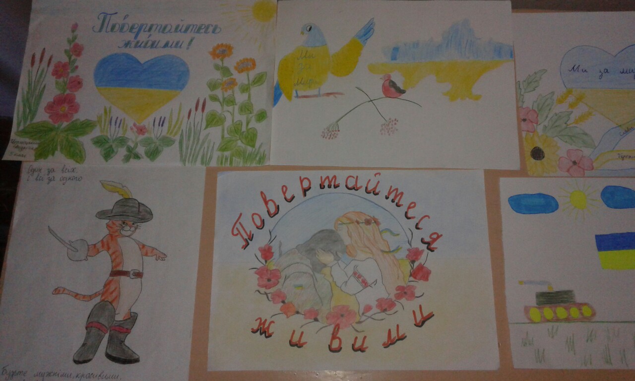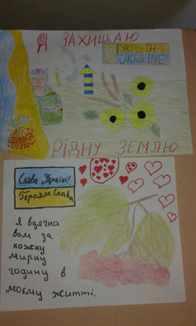 В знак подяки українським захисникам учні Дуб'євського НВК намалювали малюнки , як символ підтримки та зміцнення духу єдності.