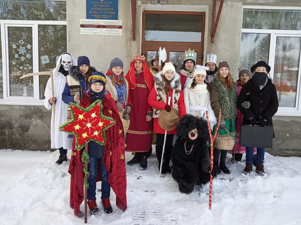 Різдвяні вітання линуть від Дуб'євського НВК. Хай ангел торкнеться Всіх ніжно крилом, Зігріє всім сердце Різдвяним теплом. Хай радість, кохання наповнять ваш дім, Оселяться щастя та спокій у нім! Христос ся рождає! Славімо його!