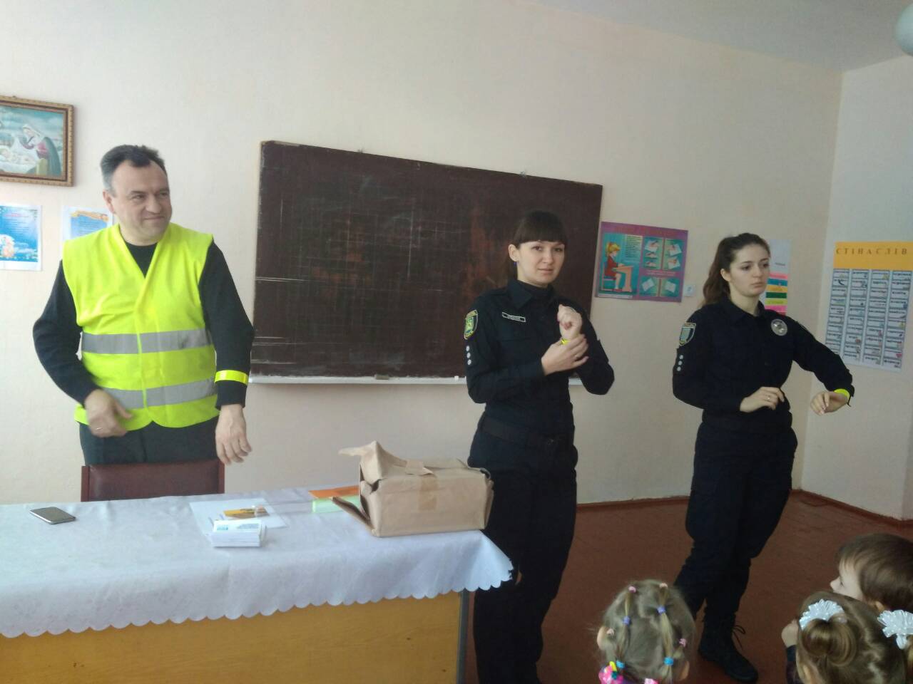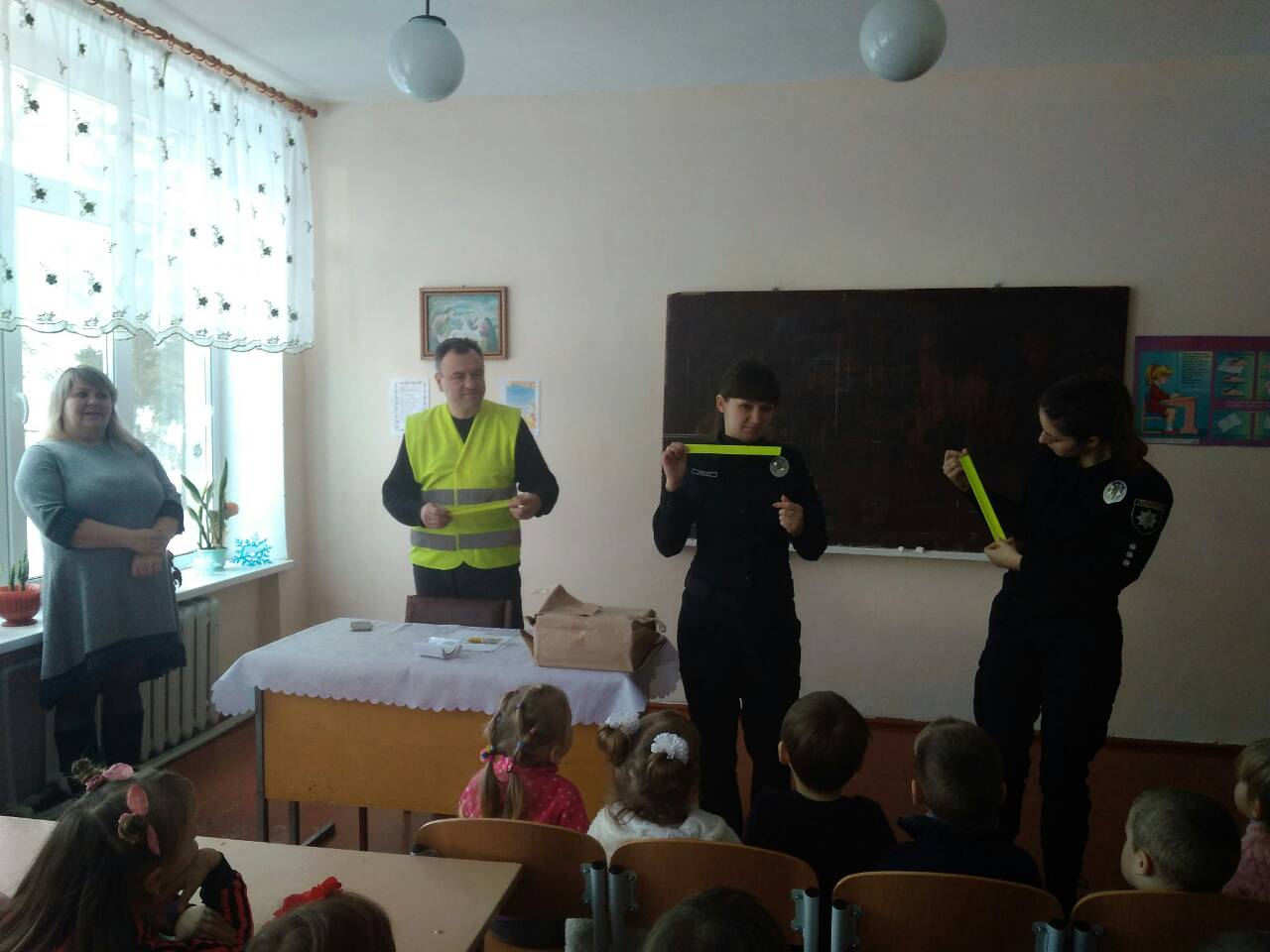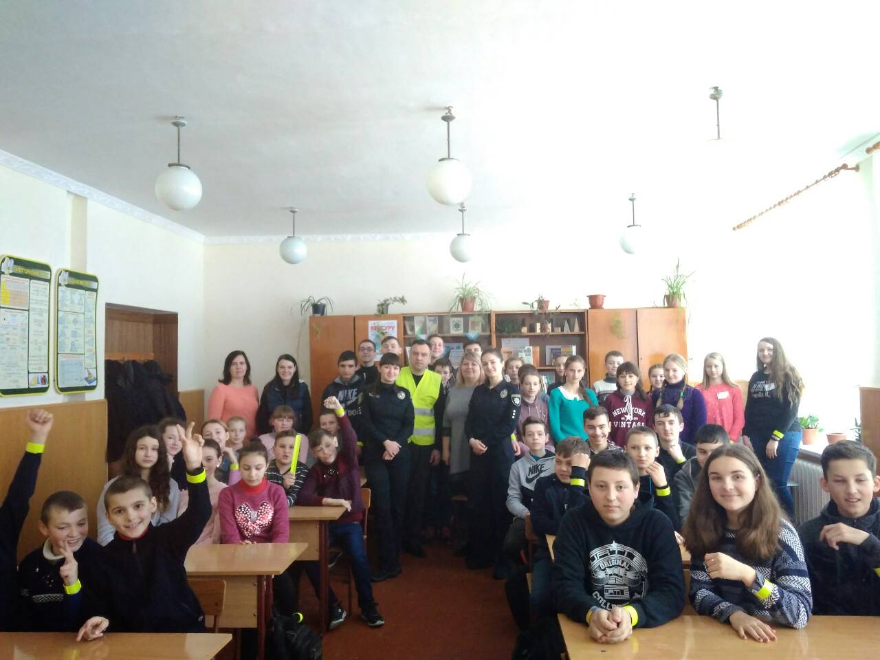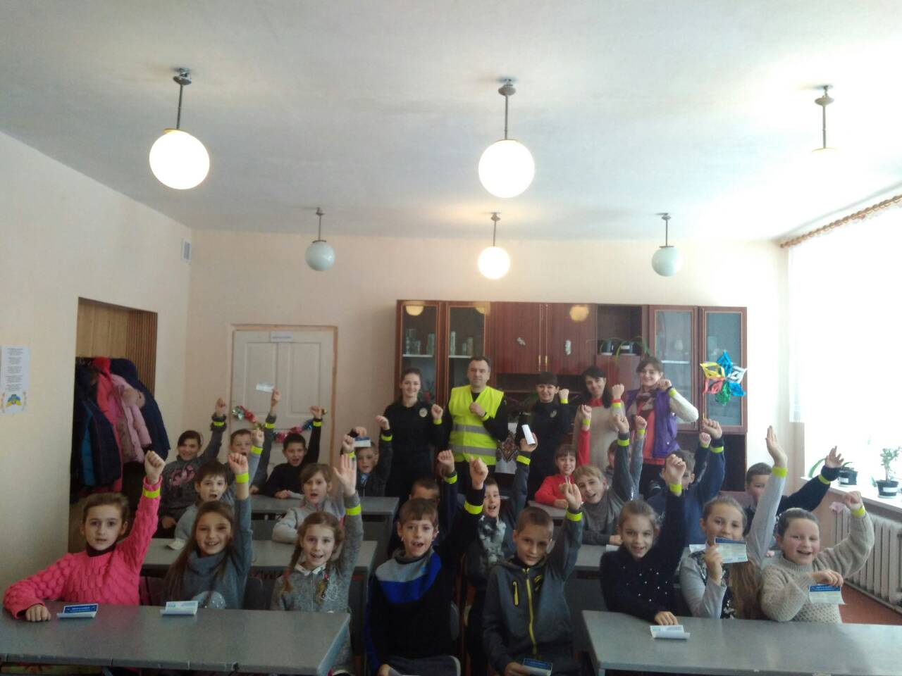 Учням початкової школи роздали книжки про ПДР, флікери (світловідбиваючі елементи) та пам'ятки свідомого пішохода. Учні старшої школи отримали світловідбиваючі елементи.