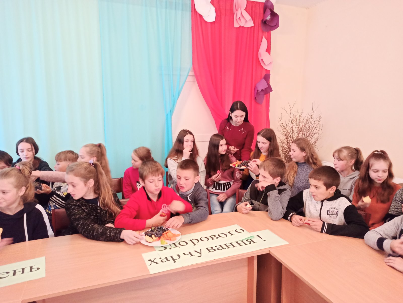 Учні та педагоги Дуб'євського НВК із задоволенням долучилися до відзначення цього дня та взяли участь у інформаційних заходах "Абетка здорового харчування", які підготували педагоги-організатори. Обговорювали поняття "здорове харчування", розглядали таблиці вітамінів та ласували корисними смаколиками.