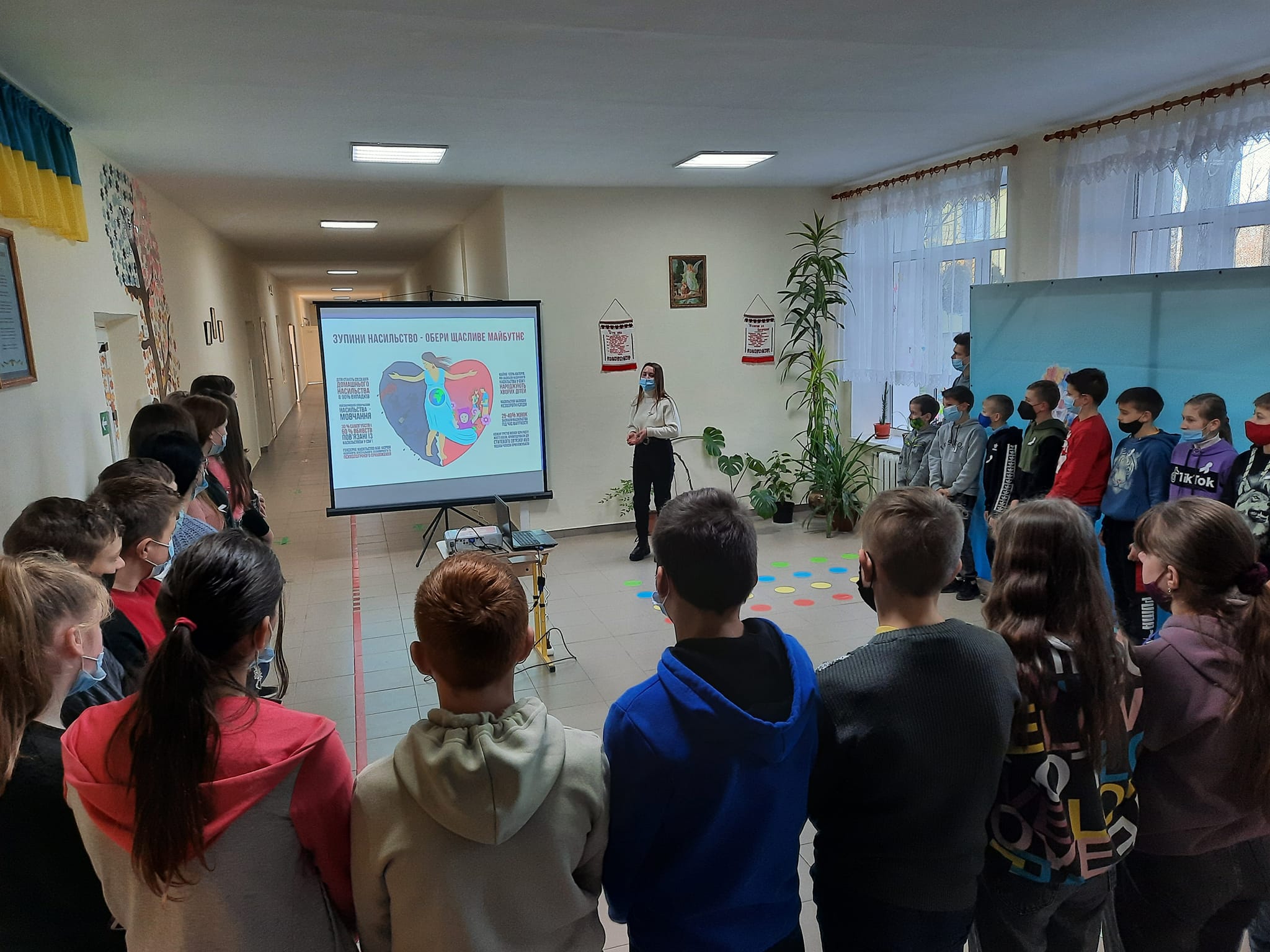 Практичним психологом Крак М.А. з учнями 1 класу створено лепбук “Толерантний всесвіт побудуй”; з учнями 2 та 3 класу проведено заняття “Сонце світить всім однаково”, “Шлях до толерантності” та переглянуто короткометражний мультфільм “Тамара”; з учнями 4 класу переглянуто відеоролик - “Квітка толерантності”.