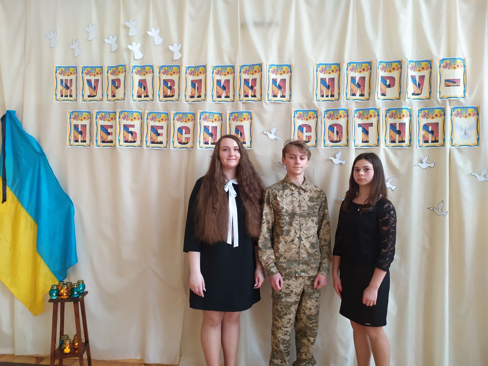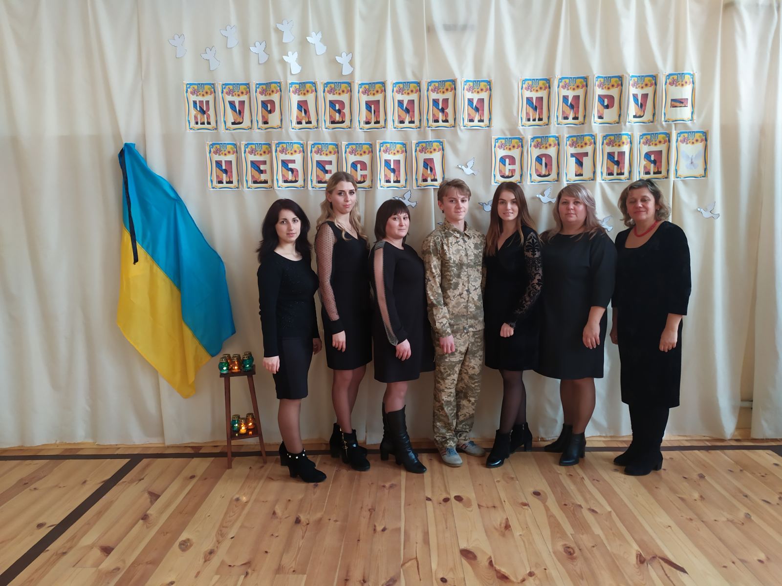 У переддень дня пам'яті у Дуб'євському НВК відбувся вечір пам'яті «Журавлики миру - Небесна Сотня...» , який підготували педагог-організатор Дубенська Т.І., спільно із учнівським самоврядуванням та вчителями закладу освіти.