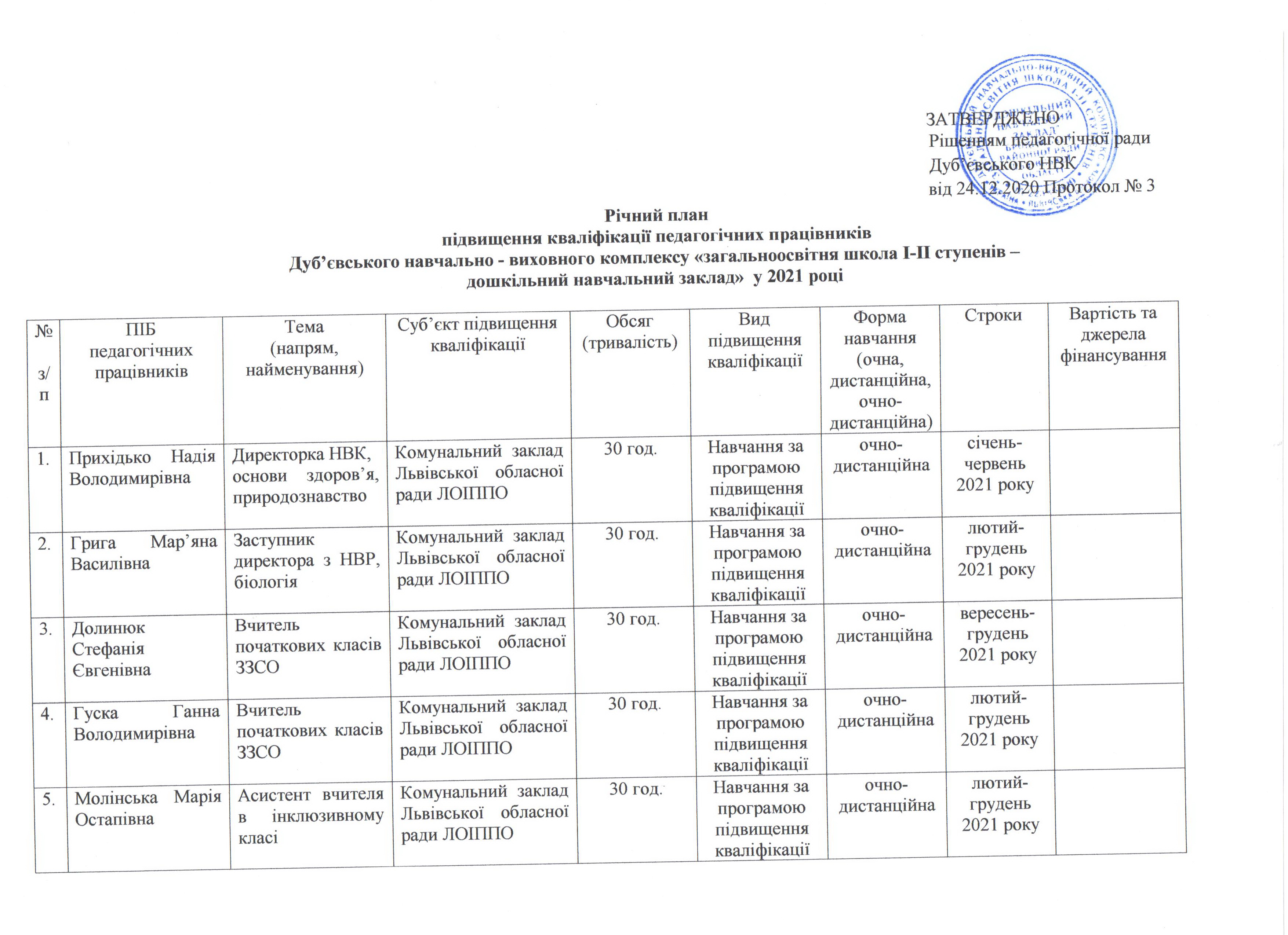 План заходів Дуб'...