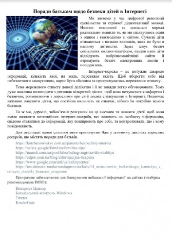 Інформація для батьків